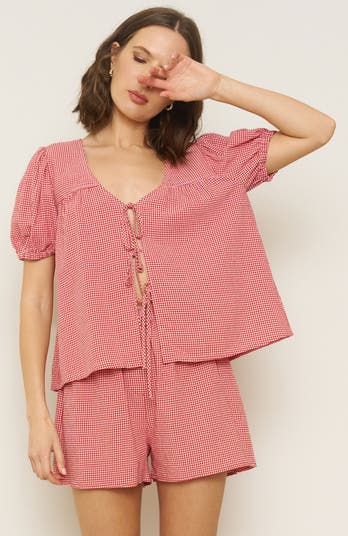 Get ready for the perfect summer look with our Birdie Top. This stylish top features cap sleeves and a tie front design for a feminine touch. Pair it with your favorite bottoms for a versatile look, or create a stylish set with our Marissa Boxer Shorts.