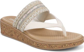 A Bzees Air Step cork wedge and textured footbed elevate the lasting comfort of this flip-flop designed with a woven strap for a light, summery look.