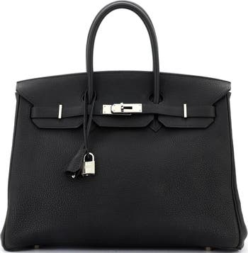 Birkin Handbag Black Clemence with Palladium Hardware 35