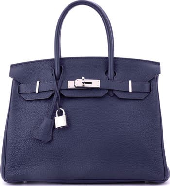 Birkin Handbag Blue Clemence with Palladium Hardware 30