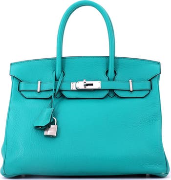 Birkin Handbag Blue Clemence with Palladium Hardware 30