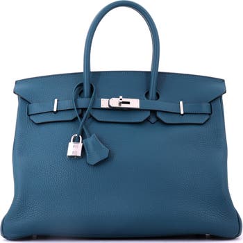 Birkin Handbag Blue Clemence with Palladium Hardware 35