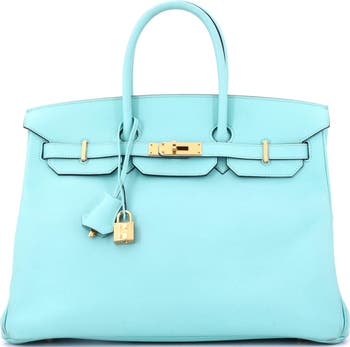 Pre-Owned Hermes Birkin Handbag Blue Epsom with Gold Hardware 35, Main, color, Bleu Atoll