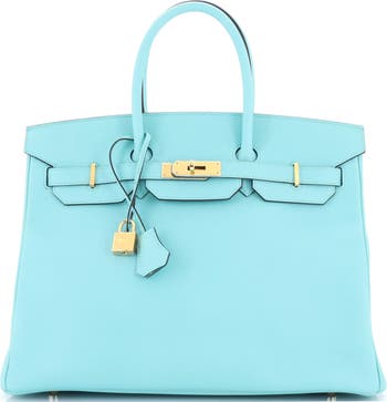Birkin Handbag Blue Epsom with Gold Hardware 35