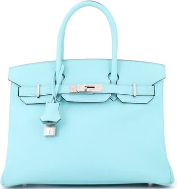 Birkin Handbag Blue Epsom with Palladium Hardware 30