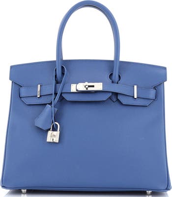 Birkin Handbag Blue Epsom with Palladium Hardware 30