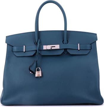 Birkin Handbag Blue Epsom with Palladium Hardware 35