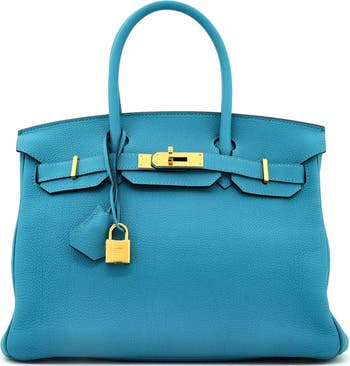 Pre-Owned Hermes Birkin Handbag Blue Togo with Gold Hardware 30, Main, color, Turquoise