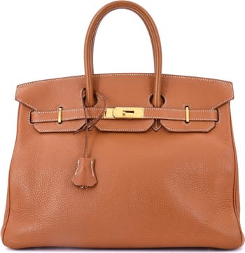 Birkin Handbag Brown Clemence with Gold Hardware 35