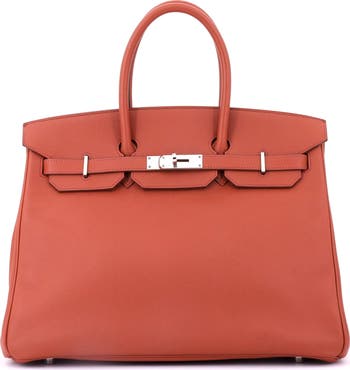Birkin Handbag Orange Epsom with Palladium Hardware 35
