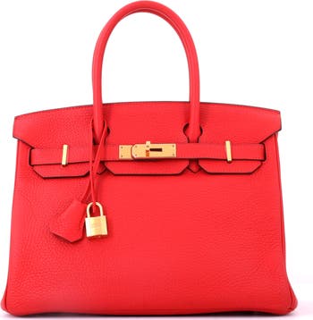 Birkin Handbag Red Clemence with Gold Hardware 30
