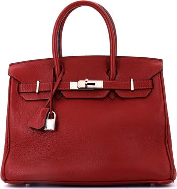 Birkin Handbag Red Clemence with Palladium Hardware 30