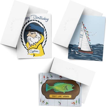 Birthday Assorted Greeting Card Pack (3ct) "Captain, Fish, Boat"