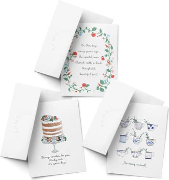 Birthday Assorted Greeting Card Pack (3ct) "Tea, Flowers, Cake"