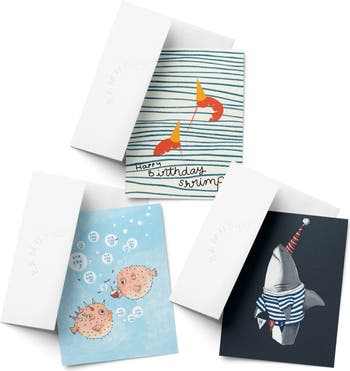 Birthday Greeting Card Pack Sets (3 ct, Assorted) Shrimpy, Are You 1, Are You 2... HBD Shark