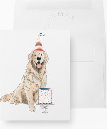 - Front artwork features a birthday golden retriever
