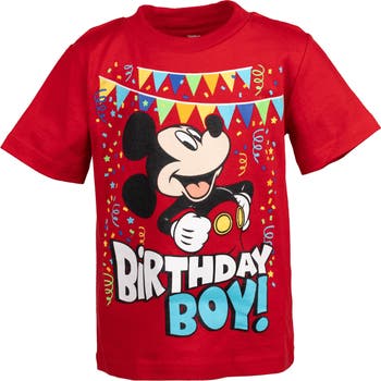 Celebrate your kid's special day with their favorite Disney characters in these stylish Disney birthday shirts! These cute short sleeve tees feature vibrant colors and fun birthday themed artwork with a choice of a Mickey Mouse design with the words "Birthday Boy," Simba from The Lion King with the words "Birthday King," Winnie the Pooh and his friend Piglet with the words "Birthday Bear," Lightning McQueen and Mater from Cars with the words "Birthday Champ," Woody, Buzz Lightyear, Rex, and the Aliens from Toy Story with the words "Yay Birthday" and "Party Time," and a Buzz Lightyear design with the words "Birthday Ranger." Dressed in these soft and comfy tshirts, your Disney fan is ready for an exciting birthday adventure!