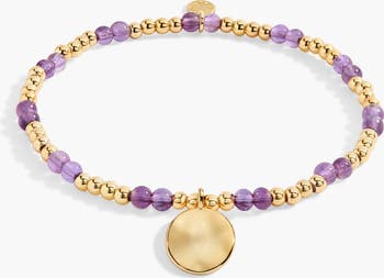 Introducing the Birthstone Collection from A Littles & Co.! Featuring a pretty charm, with alternating gold-tone plated beads and semi-precious gemstones, the Birthstone A Little 'February' Bracelet In Gold-Tone Plating is sure to make the birthday girls stack shimmer. Wrapped around a sentiment-stamped card, this little style makes the most wonderful gift.