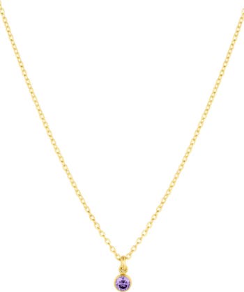 A mini pendant necklace offers sweet sparkle with a birthstone-inspired cubic zirconia charm in the color of your choice.