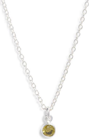 A mini pendant necklace offers sweet sparkle with a birthstone-inspired cubic zirconia charm in the color of your choice.