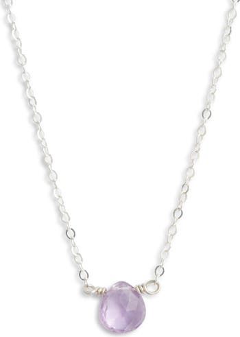 This delicate necklace made from sterling silver or 14-karat-gold fill features a birthstone-inspired semiprecious stone faceted into an organic-shaped pendant.