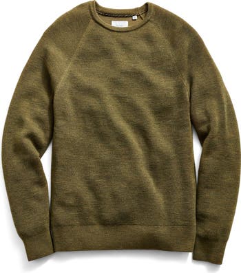 Sporty raglan sleeves highlight the exceptional craftsmanship of this dimensional ribbed sweater knit from melange yarn blending cozy wool with soft cotton.