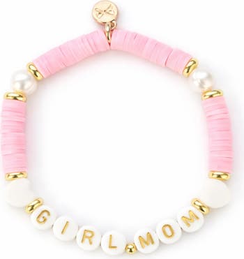 - Gold-tone letter beads spelling “GIRL MOM”