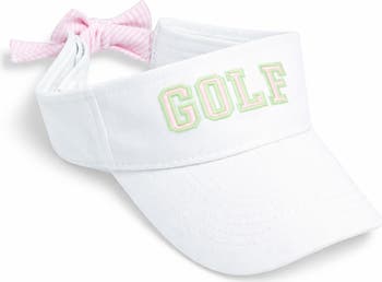 Perfect her swing and her style with the Golf Bow Visor, designed for little golfers who love to look polished on and off the course. Featuring Bits & Bows signature seersucker bow at the back and a classic visor silhouette, this piece combines playful charm with practical sun protection. Lightweight and comfortable, the visor keeps the sun out of her eyes while the statement bow adds the perfect finishing touch to every golf outfit. Whether she’s heading to the driving range, the course, or the clubhouse, this visor is made for girls who love the game.