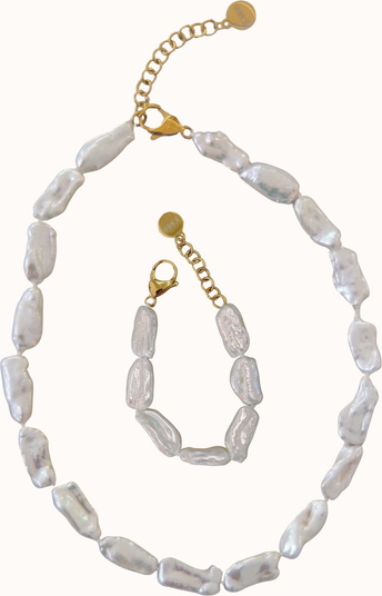 - Includes one Biwa pearl necklace and one Biwa pearl bracelet