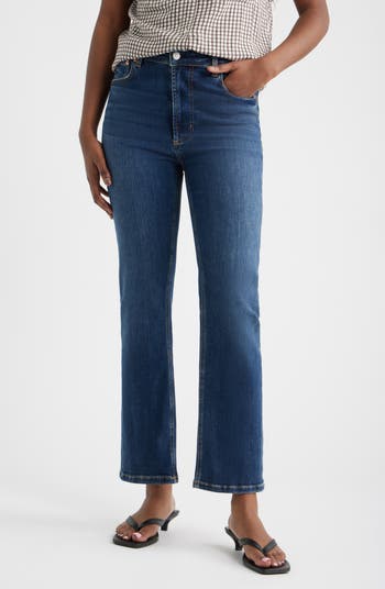 Soft stretch-kissed jeans are made in a faded wash and finished with classic straight legs.