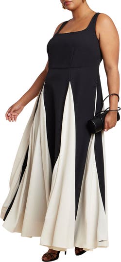92% Cotton 8% Spandex Close fit Fully lined Square neck Back zipper Floor length 60" from highest point of shoulder on size 18 Stretch crepe Machine wash cold gentle cycle with like colors. Only non-chlorine bleach when needed. Tumble dry low. Cool iron as needed.