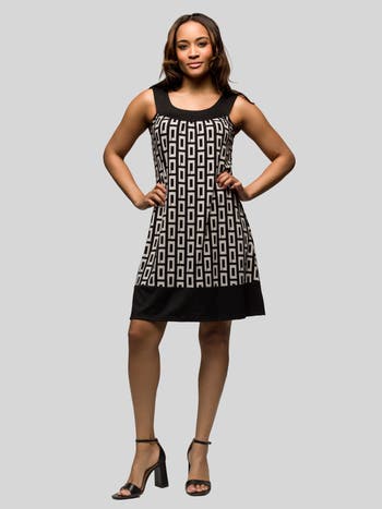 Black and White Scoop Neck Sleeveless Knee Length Dress