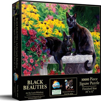 Black Beauties 1000 Piece Jigsaw Puzzle - 1000 pc Jigsaw Puzzle - Completed Size: 20" x 27" - Puzzle Artist: Lucie Bilodeau - Interlocking Pieces and Durable Construction: SunsOut jigsaw puzzles feature interlocking pieces that fit securely, making assembly easier and reducing frustration. Made with high-quality recycled cardboard, they are durable and to easy to work with - Warranty: SunsOut puzzles being made in the USA ensures high manufacturing standards include a worry-free guarantee ensuring any issues with missing or damaged pieces are resolved, reflecting SunsOut's commitment to quality and customer service. - Eco-Friendly Materials: SunsOut puzzles are crafted with eco-friendly materials