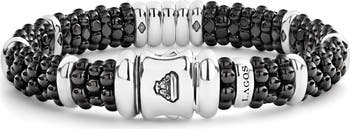 Polished sterling silver insets flank a twinkling pavé diamond station at the focal point of this signature Caviar beaded bracelet made from black ceramic.