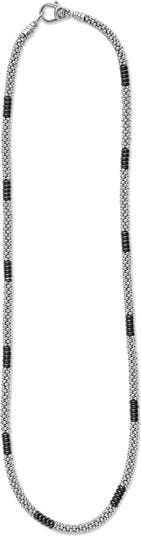 Bubbly caviar beading contrasts with ceramic stations in this sterling silver necklace.