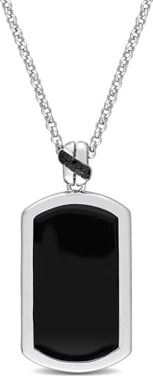 This bold and beautiful hexagon enamel necklace is crafted in luminous sterling silver. This stunning necklace features ten round-cut, prong-set diamonds crowning a metallic rounded hexagon pendant coated with enamel. Enhanced with a polished finish, the pendant is suspended on a 22-inch diamond-cut rolo chain secured with a lobster clasp. A modern accessory.