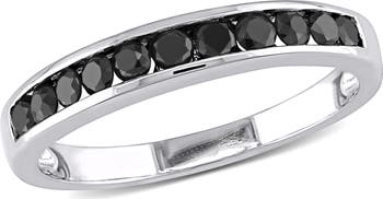 Celebrate your continued journey with the sophisticated elegance of this striking anniversary band. Crafted in luminous sterling silver, this ring features a continuous, deep stream of black diamonds, symbolizing the unwavering strength and mystery of your enduring love. The dark sparkle offers a chic, modern alternative to traditional bands. This piece is a powerful, versatile accessory, perfect for stacking or wearing alone as a bold statement of commitment.