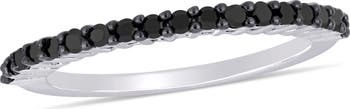 Celebrate your lasting commitment with the dramatic brilliance of this stunning anniversary band. Crafted in radiant 10k white gold, the ring is treated with rich black rhodium plating, creating an intense, dark backdrop. This contrast highlights the continuous stream of black diamonds, symbolizing the powerful and unique depth of your love. This piece is a sophisticated, versatile accessory, perfect for adding an unforgettable, modern edge to your collection.