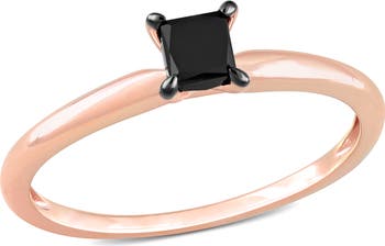 Make a bold and dramatic statement of commitment with this princess cut black diamond solitaire engagement ring. Crafted in luxurious 10k gold, the ring features a captivating princess-cut black diamond centerpiece, known for its deep, alluring color and striking geometric facets. The clean, modern simplicity of the solitaire setting beautifully emphasizes the intense hue of the black diamond. This piece is a truly unique and sophisticated declaration of everlasting love, defined by its refined design and unforgettable style.