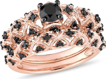Embrace the dramatic romance and rich warmth of this vintage black diamond bridal set. Crafted in luminous rose silver, the set features an intricate, detailed design that evokes the sophisticated artistry of a bygone era. The striking contrast between the intense black diamonds and the rosy metal creates a captivating and luxurious look. With a substantial total diamond weight, this set is a powerful, unforgettable symbol of deep, enduring commitment and unique style.