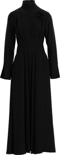 Black Dress with Brooch Detail the Collar