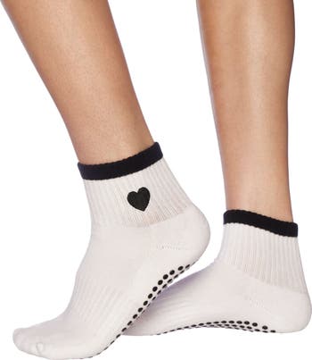 For those who like their fitness gear bold and a little edgy, these black-on-black heart socks bring traction and attitude. A sleek fit hugs your feet while grippy soles keep you anchored on mat or reformer. Because power can be stylish, too.