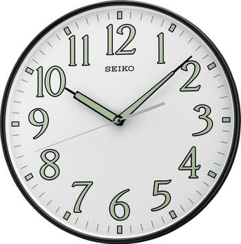 The Black Watch Wall Clock is versatile and has a simple design that easily blends into any style of décor. This clock features a sturdy black metallic case, quartz movement and a quiet sweep second hand. The numerals and hands are luminous in the night. Powered by 1 AA battery (included). Overall dimensions: 11.75 X 11.75 X 1.75 inches. All Seiko clocks are equipped with quartz movement making it the most accurate at time keeping.