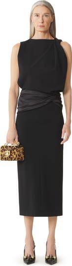 This dress pays homage to the elegant drapings designed by Jeanne Lanvin for her Haute Couture creations. It combines comfort with style, featuring draped details and a breathable fabric. The fabric holds its shape and prevents creases throughout the day, for a sophisticated and polished look.