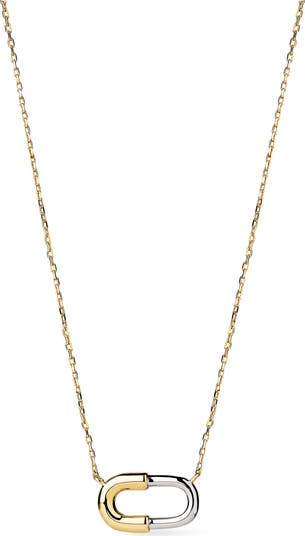 Understated shine defines this layer-friendly necklace featuring a small two-tone pendant beaming with 14-karat-gold plate and rhodium plate.