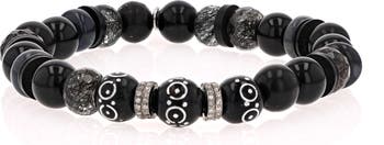 Black Mix 8MM Bead Bracelet With 4 Diamond Rondelles