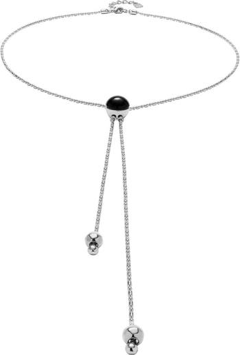 - Sterling silver plated metal alloy pendant with adjustable chain and black murano