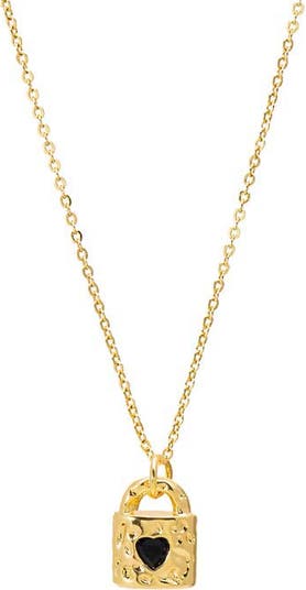 The Black Onyx Heart Lock Necklace by Adina Eden delivers sleek simplicity in a modern Necklace you'll love. A pop of polish and personality, this cute necklace for women is styled in Black. From morning errands to evening events, this detail adds subtle structure and polish without taking over your look. Pair this gold plated necklace with accents from our Tennis Necklaces collection for a timeless, layered effect. It adds to your outfit without ever trying to take the spotlight.