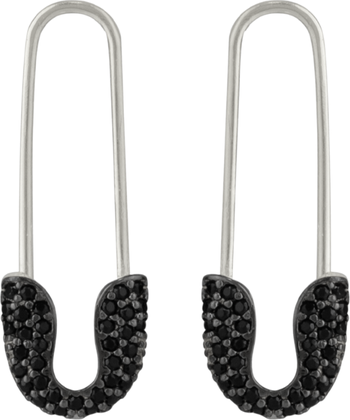 Black Pave Safety Pin Earring Jewelled Sterling Silver