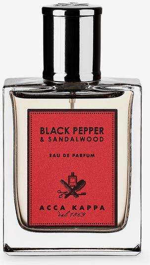 A warm, spicy and woody fragrance. Transport yourself to a bustling spice bazaar, where rich, warming spices dance through the air, and hints of smoky embers linger in every corner. ACCA KAPPA's Black Pepper & Sandalwood fragrance captures the essence of this sensory journey. Deep and warm, this scent harmonizes spicy notes of Cinnamon with delicate hints of Damask Rose and Bergamot. As the fragrance settles, the base notes of Sandalwood, Patchouli, and Black Musk contribute to a rounded and lasting olfactory experience. Winner of the International Art and Olfaction Award in 2015, indulge in the rich embrace of Black Pepper & Sandalwood by ACCA KAPPA. Olfactory Pyramid Top notes: Bergamot - Elemi - Davana - Saffron - Cloves - Nutmeg - Balsam Fir Heart notes: Rosa Damascena - Cinnamon - Black Pepper - Agarwood Base notes: Patchouli - Haitian Vetiver - Sandalwood - Virginia Cedarwood - Cypriol - Black Musk How to Use Apply directly to clean, dry skin. Holding 3-6 inches away, target pulse points such as your inner wrists and neck. Ingredients Ingredients Alcohol Denat., Parfum (Fragrance), Aqua (Water), Eugenol, Geraniol, Limonene, Cinnamal, Coumarin, Citral, Linalool. ESSENTIAL OILS Bergamot - Elemi - Davana - Patchouli - Vetiver - Cedarwood - Balsam Fir - Cloves - Cinnamon